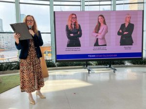 Ogromne emocje i świetne projekty! Wśród prezentujących znalazła się dr Aleksandra Hirszfeld, absolwentka Innovation Coach, która – we współpracy z naszą coach innowacji dr inż. Jagoda Lazarek – rozwija projekt Quantum Collective Wisdom.